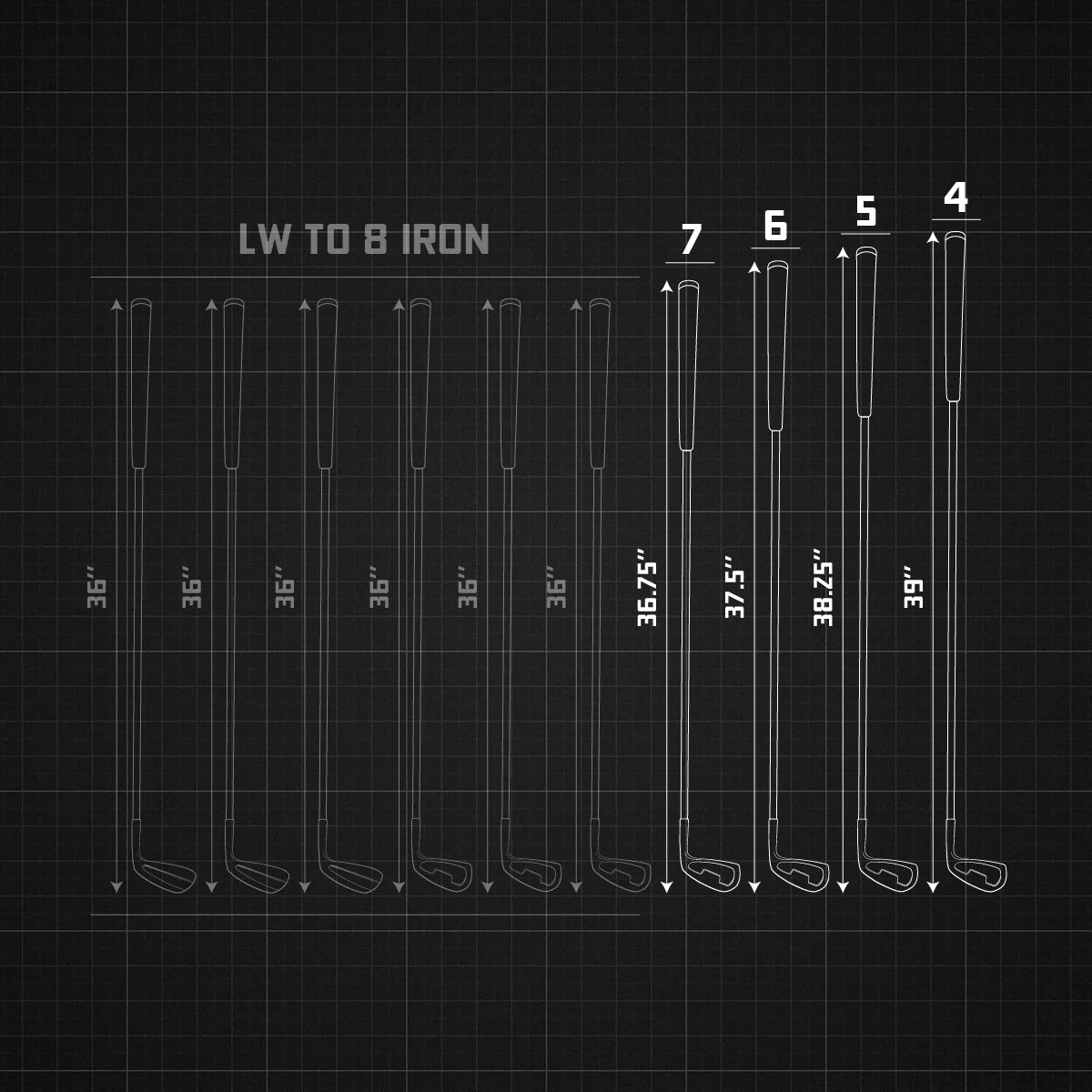 Our 4, 5, 6, and 7 irons feature variable length shafts, enabling players to maintain consistent distance gapping for longer approach shots.
